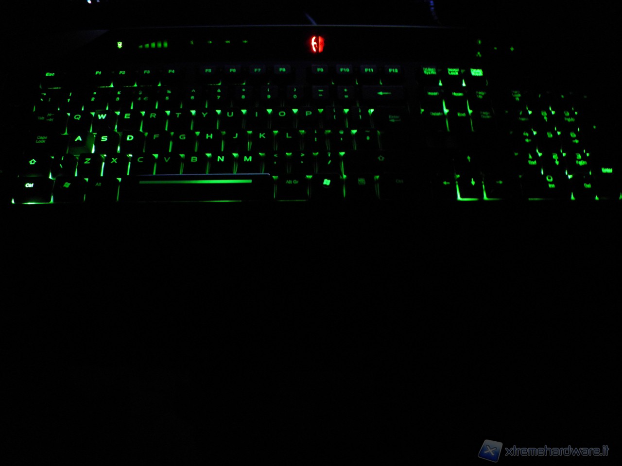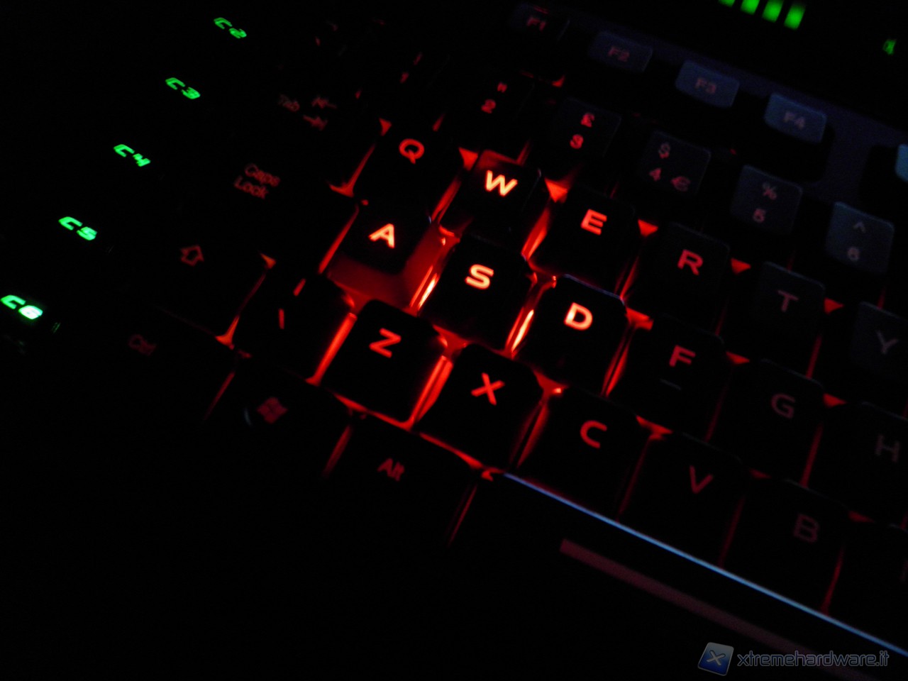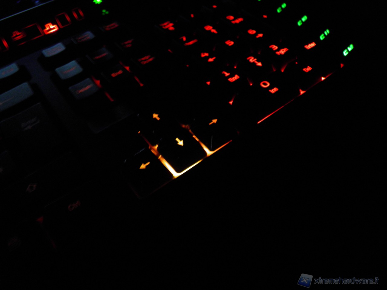 La tastiera offre due profili di illuminazione, uno pensato per l'utilizzo normale, uno per l'utilizzo durante il gaming. La configurazione dei due profili è permessa dalla console di controllo e permane al riavvio del sistema (viene quindi salvata on-board).