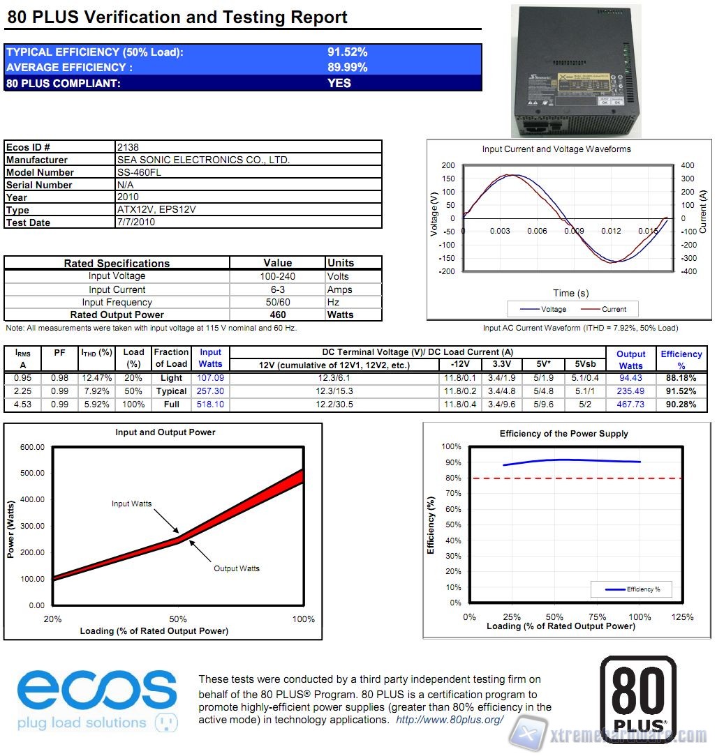 In questo capitolo prenderemo in esame alcuni dei fattori fondamentali per un alimentatore, l’efficienza e la stabilità sul canale dei 12V, quindi tutto ciò che riguarda la stabilità delle tensioni per la scheda madre, la CPU ed infine la scheda grafica. Al fine di darvi un giudizio complessivo migliore, anche riguardo all’efficienza dell’unità, vi riportiamo anche il test effettuato dall’azienda Plug Load Solutions, test che ne ha permesso la certificazione 80 plus presso l’organizzazione 80plus.org, ente che certifica tutti gli alimentatori immessi nel mercato.